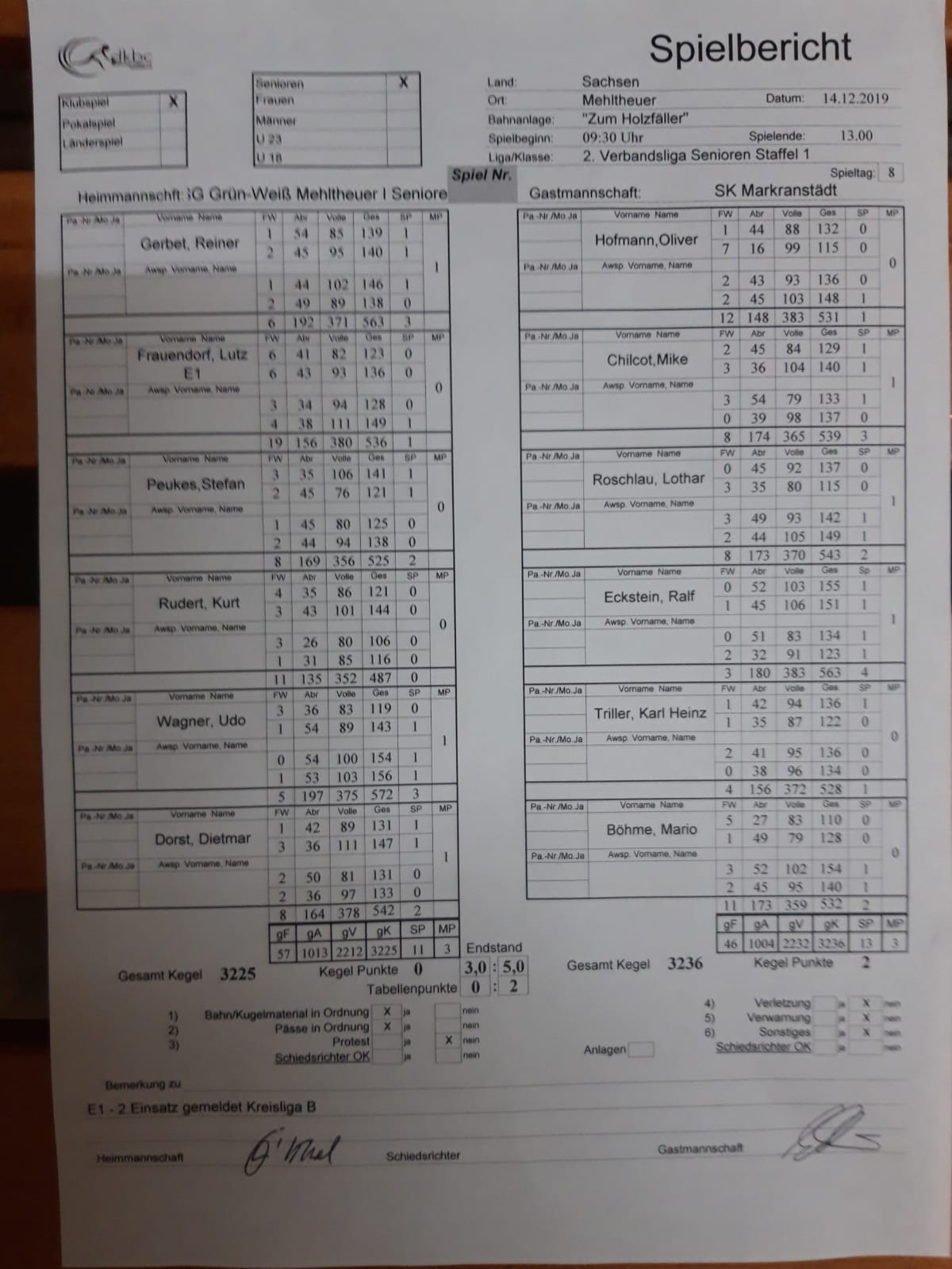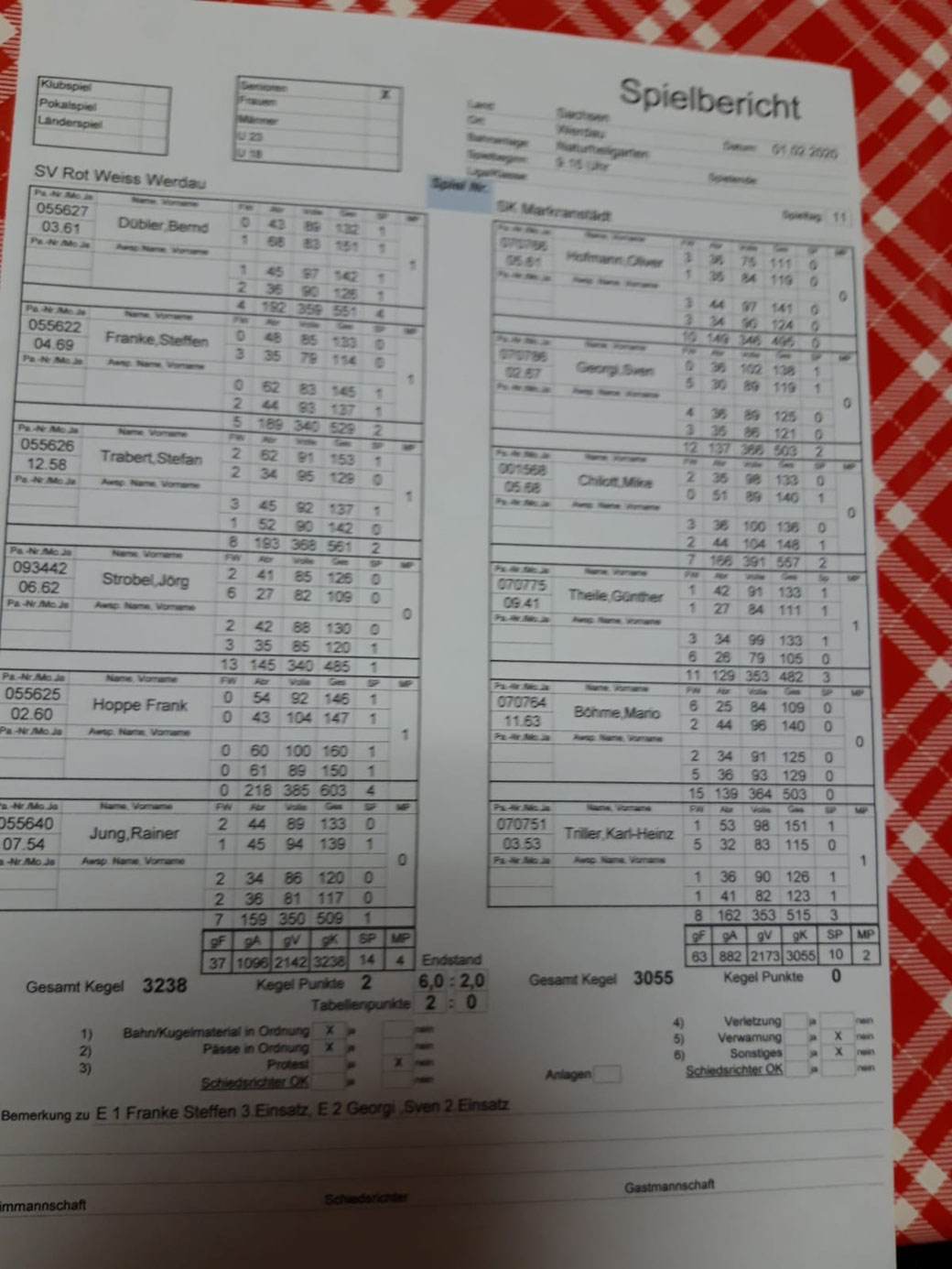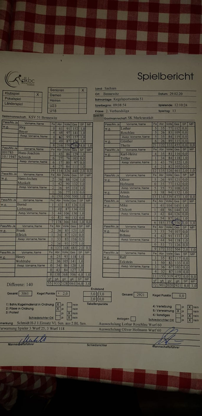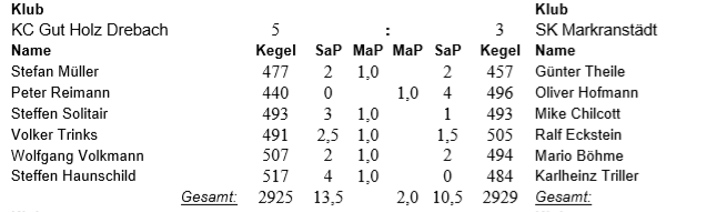 So hieß es am Ende 5:3 MP bei 3068:3066 …. ohne Worte …. 2 Holz … da fällt einem nichts weiter zu ein