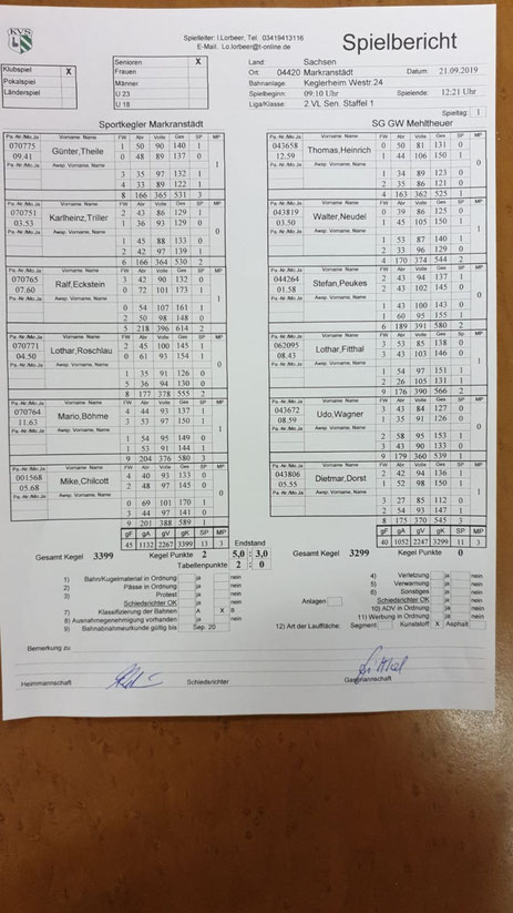 Mario kam am Ende auf 2,5 : 1,5 / 569:538 gegen Frank Hoppe und Lothar auf 1:3 SP / 526:550 gegen Joachim Hempel ... drei mal Augengerieben und fünfmal nachgerechnet ... Ein Sieg war da!!!!