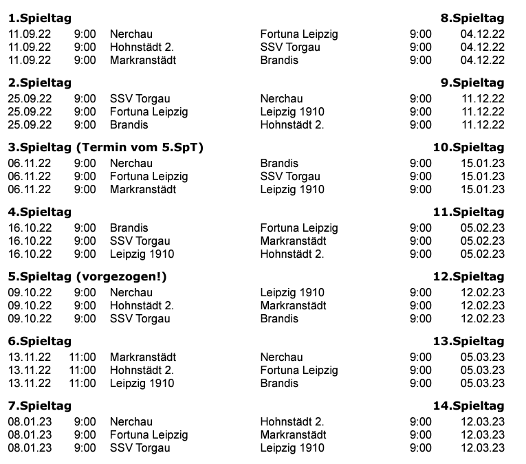 Staffeleinteilung unter Vorbehalt Stand 05.06.2022
